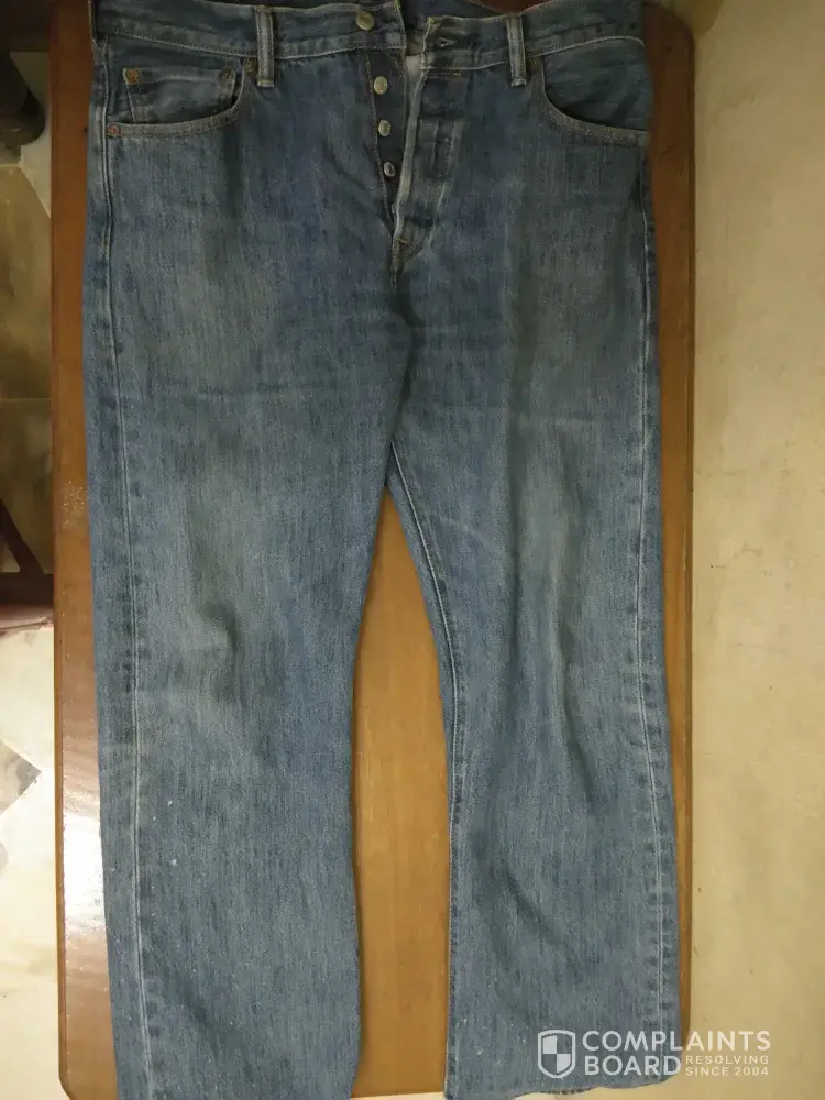 I am complaining about the new levi's jeans that we bought to my husband. He wore them with his brand nike beige colour nike airforce shoes and the jeans completely coloured - stained the new shoes!