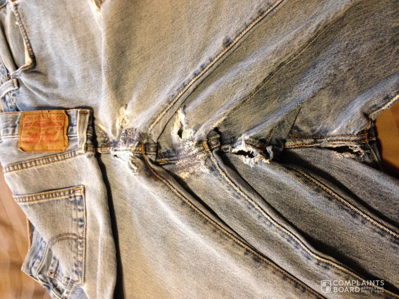 On 01 april 2012 I have bought a pair of levi’s jeans (model 751) in a branch shop in poland (wrocÅ‚aw). After just a few months of normal wearing, the trousers got torn in the crotch. I gave the article to complaint, but unfortunately it has been rejected. The reason of rejection was "the result of the defect is not the fault material, it was generated as a result of the use by the customer (material usage)". Please explain to me, why should I be responsible for the poor quality of the materials used? When buying expensive, branded jeans from a known producer as levi’s, I would rather expect quite a few years of durability than just few months. If I did not care for the long-term usage of the goods, I would have bought any cheaper pants in a network store, or at the market nearby.