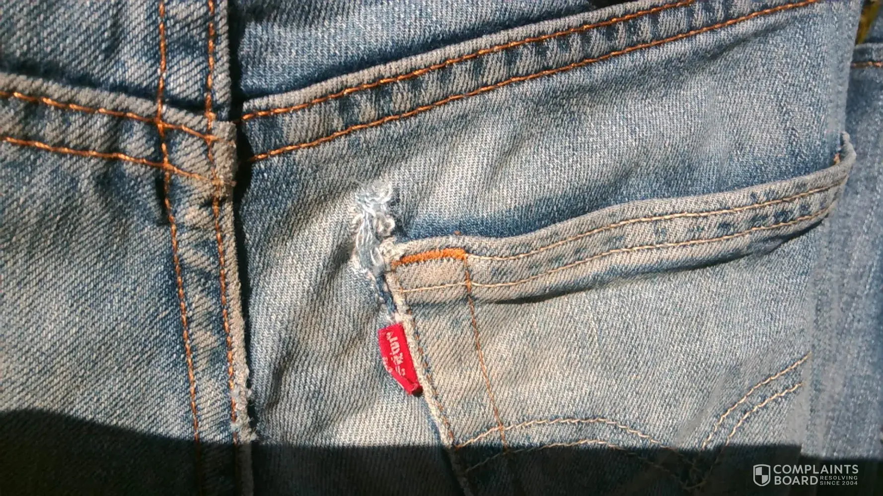 About a year ago I purchased a pair of 505s (34-30) at the J C Penney's in Prescott, Arizona. My previous older pair had eventually ripped at the corner of one of the back pockets. Now this "new" pair did the same thing a couple of months ago. I tried patching it but it just ripped again. Given that I have had two pair rip in the same place I feel this is a design flaw. And some cursory research on the internet has revealed than many other consumers have had the same problem. I have worn Levi brand jeans for over 60 years so this is disappointing. I am likely to buy Wranglers in the future.