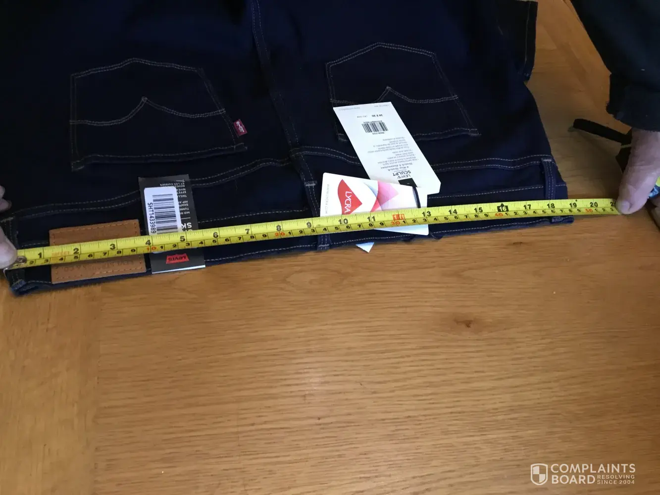 Hi I am writing as I am very disappointed in my purchase ! I was so excited about getting my Levi jeans 👖 for my birthday and new boots to go with them Birthday outfit sorted...They arrived on my birthday from Debenhams but on opening them up they looked rather big so I checked the label no it states 34 waist so tried them on they were far too big? When I got my tape measure they measure a 38 waist? I think there may be an issue with your manufacturing. I phoned Debenhams straight away and asked if I took the one hour drive to their store can I get a replacement they said there is no stock there so I ended up without my jeans and now left disappointed but also concerned with your products as these are not cheap jeans so expected a better product after all it wasn't one size bigger but 2 what were they thinking? . I have photos of my jeans and tape measure showing that they are a 38 waist not 34 see attachments