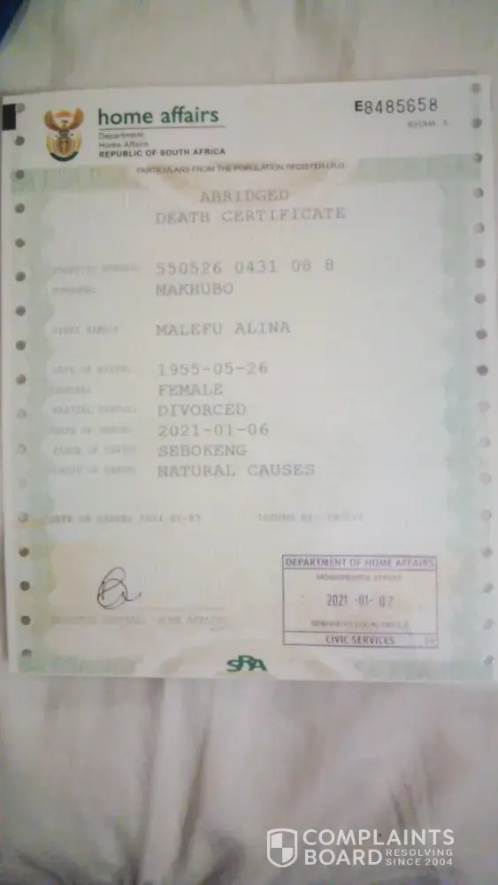 My mother passed away on January this year, after two weeks of her berial we went to Lewis to claim that my mother has passed and we submitted the documents.