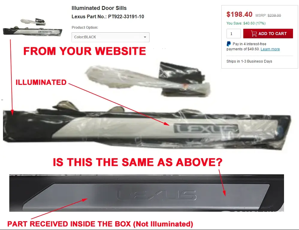 LexusPartsNow Disappointing Experience with LexusPartsNow: Inaccurate Descriptions and Poor Customer Service