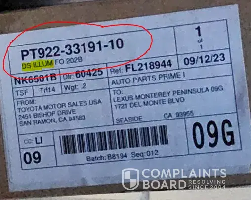 11 LexusPartsNow Complaints