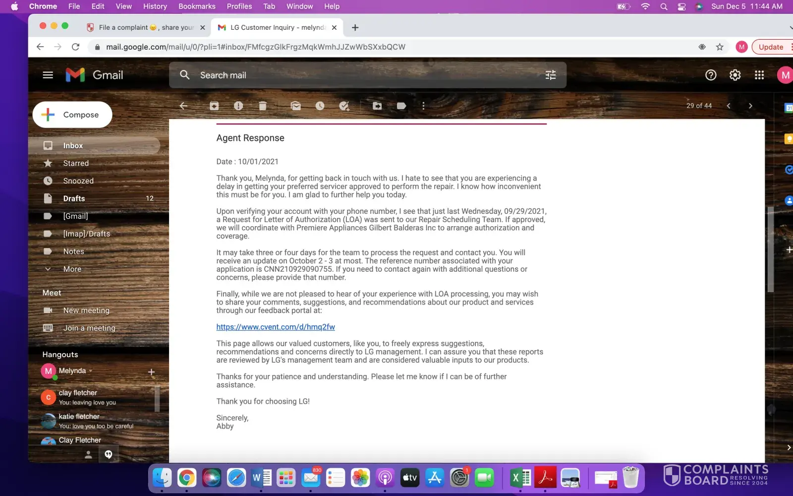 DRN211205291424 ...is the reference number for your case that is now in review by the RA department.
