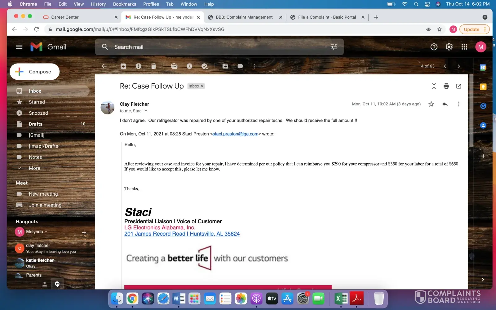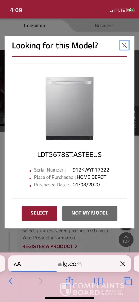 Desired outcome: Get the check cover so I can finish my business with LG Electronics and never buy another product from you