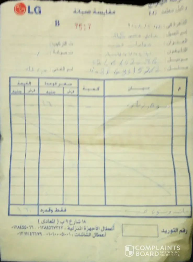 My complaint is how do I buy a product from a big company like LG and can't maintain it for such a short time whereas other companies provide guarantee period of 6 to 8 years. The way the customer service dealy with me was worst service ever.