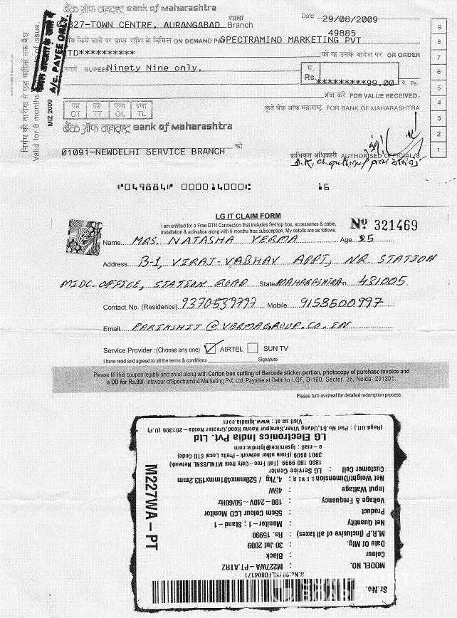 713002 DT 24 OCT 2009 IN FAVOR OF LG ELECTRONICS PVT LTD OF Rs8990/ IN THE