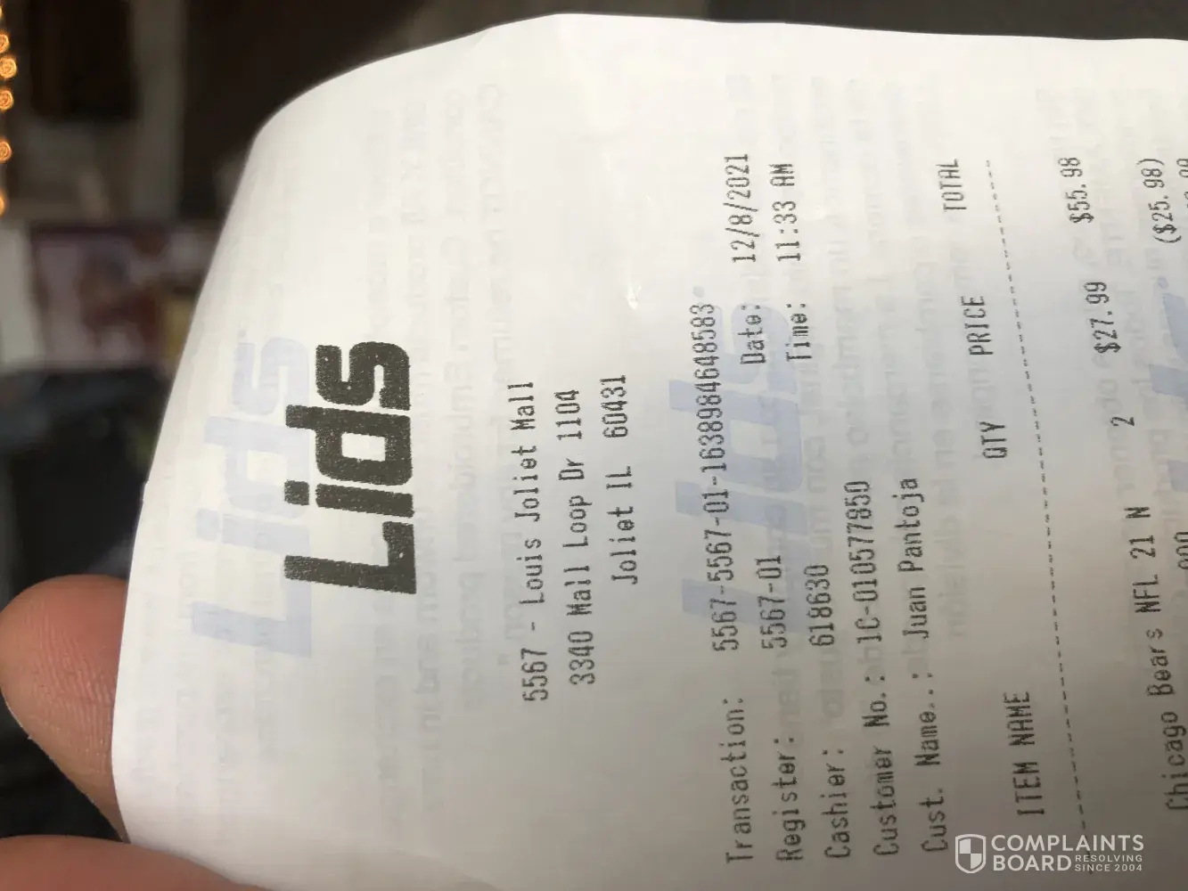 When I contacted them again they said that they need some extra time to refund me. Waited patiently and nothing. Lesson learned, will never order from Lids again.