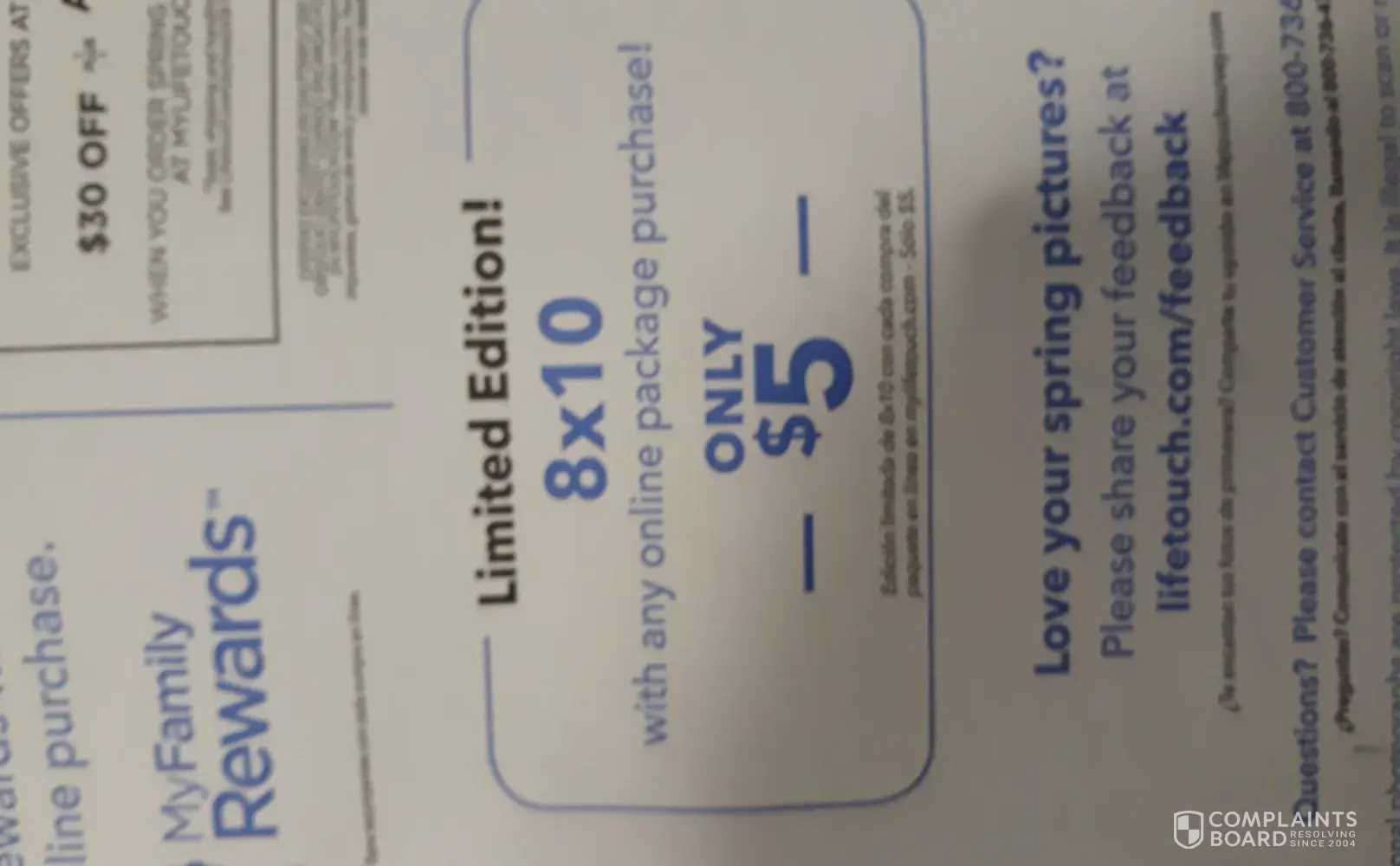 I was attempting to purchase the $20.00 package along with the attached offer $5.00 8x10 and when go to pay 8x10 is 14.00 plus shipping and handling. When go through chat and speak to a representative and a supervisor, I am advised offer is for "personalized" 8x10. Nowhere on your envelope does it indicate or imply the details of "personalized or s&h" I took about 1hr on chat to be informed of hidden details and will not honor. I was willing to pay for what pictures I want but its been a headache trying to advise of possible error on company's end and to no be able to get pictures.