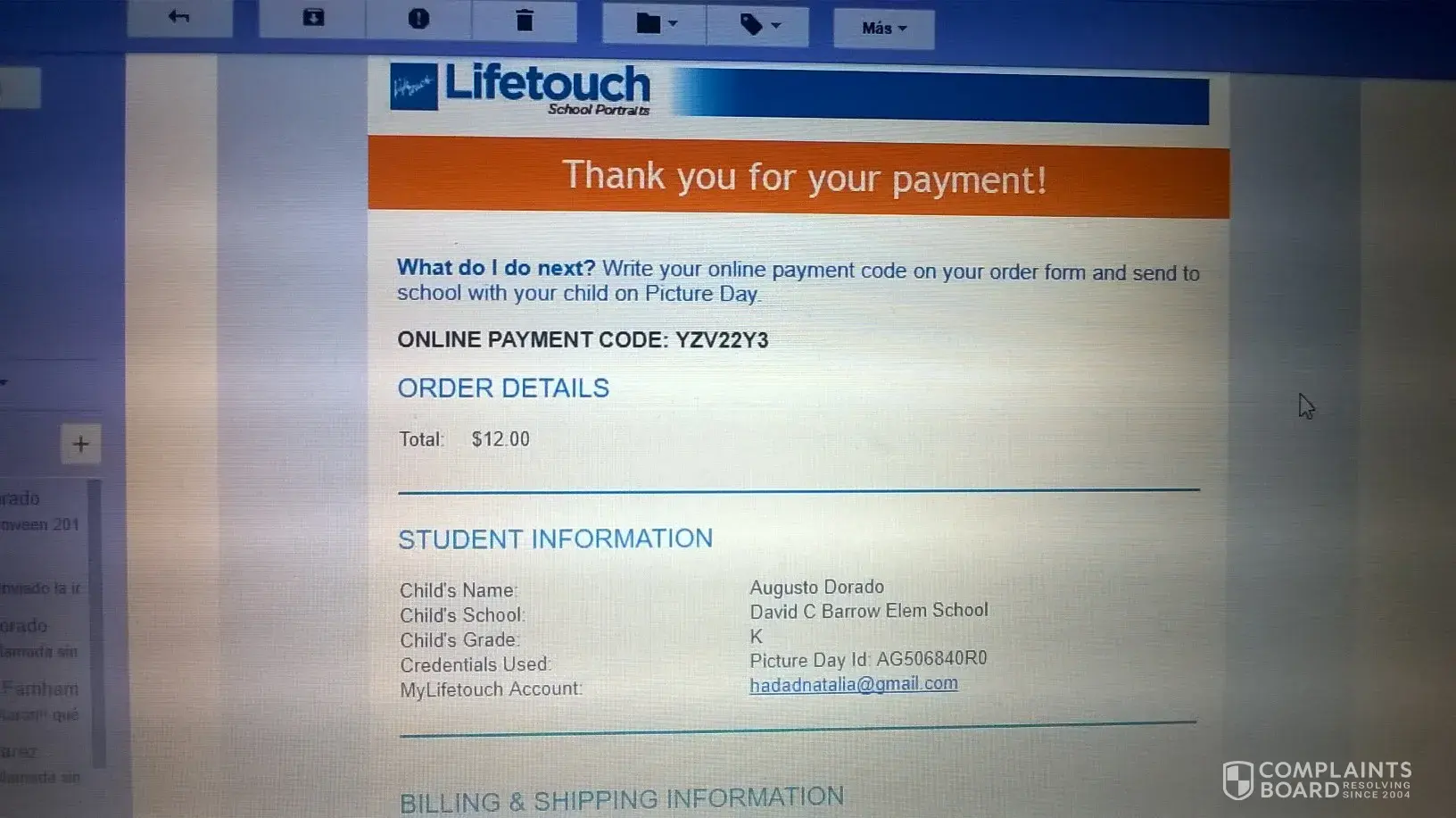 Ordered and payed online a $12-pic. My son did attend school that day, but for some reason, he didn't have his photo taken.