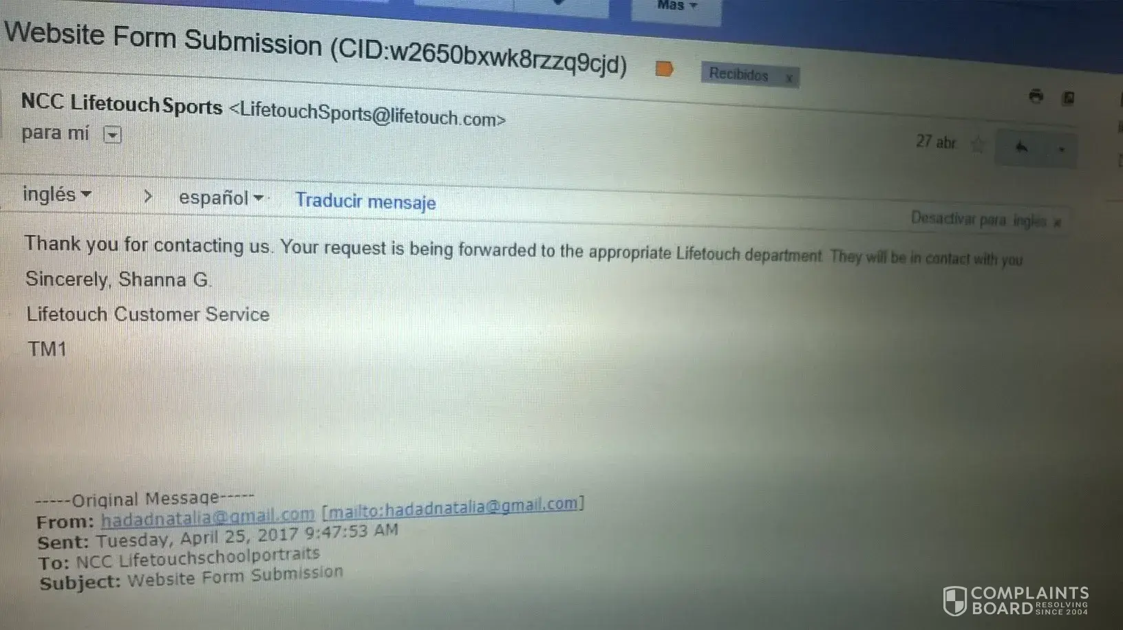The complaint has been investigated and resolved to the customer’s satisfaction.