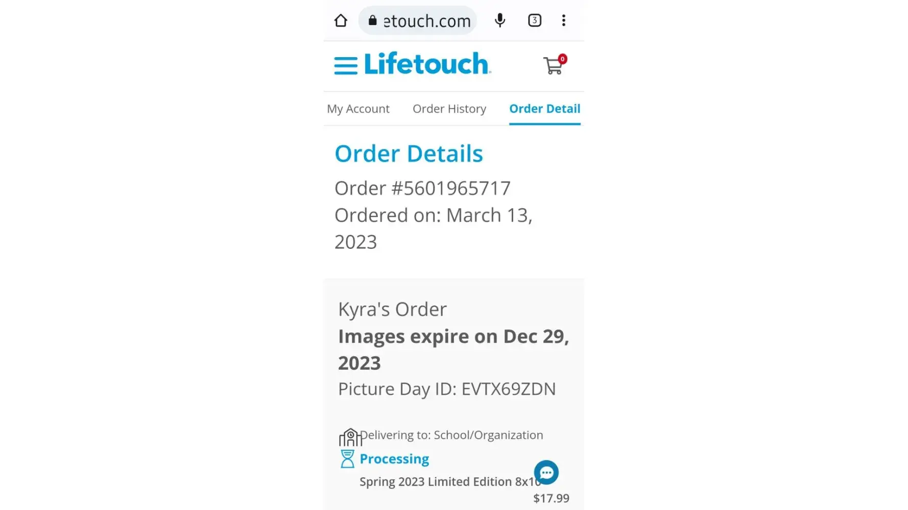 I have been trying to contact them about a refund for pictures I paid for but my daughter was sick and did not take pictures. Picture day was March 14th 2023. I have been trying to contact lifetouch through their chat option on their website and it is not helpful. Every time I call I am on hold for hours. I have gone through PayPal for a refund and they have not responded. I need a refund for pictures never taken from March 14th 2023 for Kyra Polk at Brevard Middle School. Order #[protected]