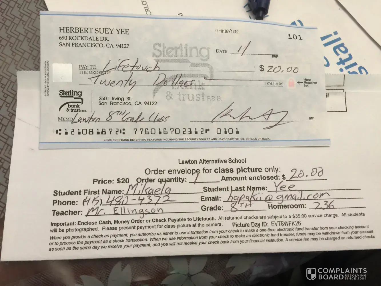 I have contact life touch severL times regarding the school pictures i bought and never received. Sadly i never received her class pic either. I called the CS line and got a lady who could barely speak english. She told me a 3rd party company in my area would be getting ahold of me. After being on the phone with her for 45 mins i was frustrated. She wouldnt gove me the local companys name, and lord knows I am dreading calling again. I shloudnt have to call multiple times. I paid for the product now send it to me. My other daughter is in 3rd grade at same school and i got both of her pics and class picture. Lifetouch you suck! I have bought preschool and k and 1 and 2 and 3 years from u and never had an issue until now. I will not be funding your company ever again!