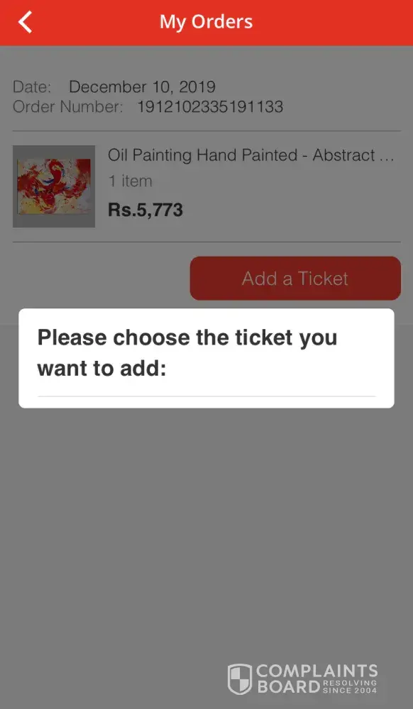 I would like to make a complaint that I have made a purchase of oil painting from their website having order number as [protected] with credit card, however, they are showing order as status as pending and payment has been successfully made through credit card. When I tried to contact them on customer support, it does not show any email, phone number or chat support. Only a button is there called "Submit Ticket" because when you click on it, Nothing happens except a pop up comes which say "Please choose a ticket which you want to add". Just fed up with their app as well as website version. Never happed this kind of issue with any of the online shopping website like Amazon, eBay etc. I don't know how to what to do next. Worst experience ever felt.