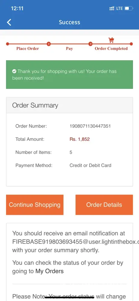 Light In The Box non receipt of order made online to lightinthebox
