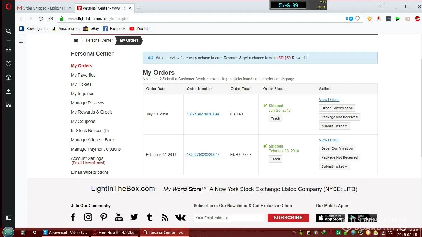 I`ve asked why this should be & they`re still processing what should be a simple logic that either their software or staff are crap! When you login through Facebook there`s no record of any orders with this company & the only way to contact them is through My Orders which this above order is currently not listed. This must take the award for craziest & worst service to-date I`m trying to explain to customs who are not the nicest of people that the people Emailing me about my order can`t even put the purchased item in my A/c! Light In The Box for your Non Service YOU ARE TOTAL CRAP!