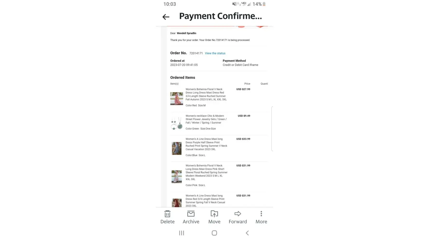 As soon as my credit card payment went through my account was hacked by Shein US Service in the amount of $383.54 along with compromising another credit card then $300 of false charges withdrawn from my debit card. All this because of charging on your so called "Safe" site. Bullcrap. Not only that but the poor quality of the materials is laughable and your sizing is inaccurate. This was ordered on 7/11/23. order number [protected] I tried to send it back but have to return to China and the postage was quoted at $56.00. This company is a scam Just return what money is due to me and I'll throw the clothes away because I'm too embarrassed to give them away. Two credit cards had to be cancelled and my debit card reissued because of you