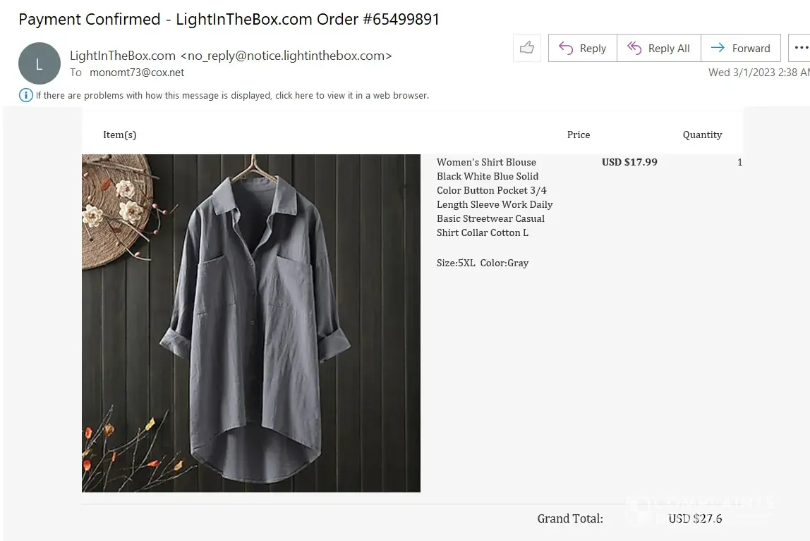I sent an order via Worldpay (Ideal) $31.95 for a shirt 818 to lightinthebox.