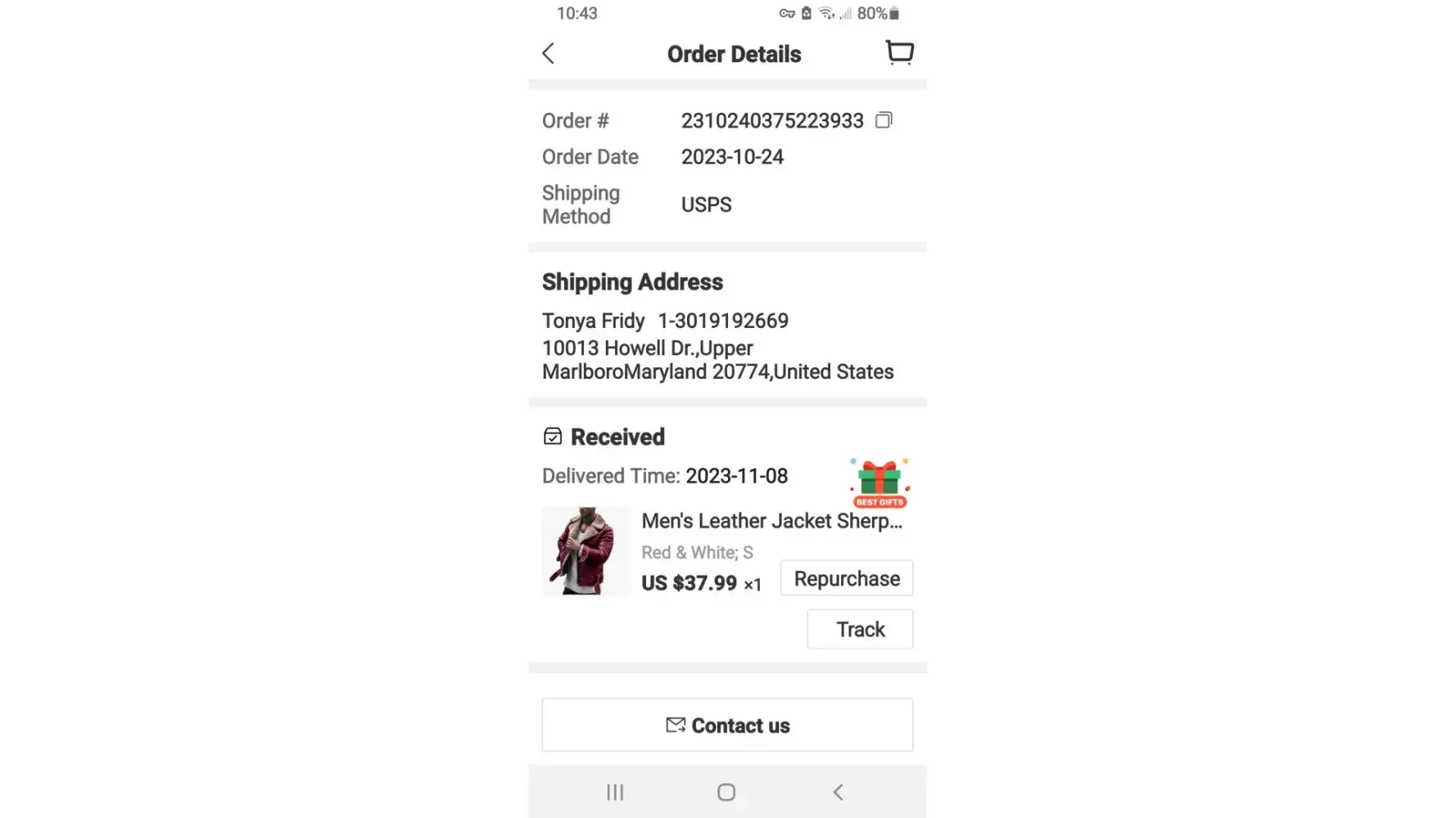 I purchased a Men's leather jacket as described on their website and received a cotton handmade jacket that is not made of leather. I feel it was a scam from the seller and Light in the box should make the seller provide the return shipping label and all my money should be refunded $48.34.
