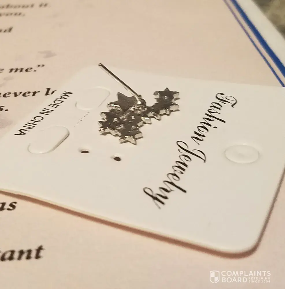 Buyer beware! The earrings were cute and all but the post came all bent to hell. Not even gonna try to straighten them. Trying to see what I can do about the shirt. Despite using their sizing chart, the shirt is too small in the bust line. Shipping does take a while (shipped from China), however I did receive my package ahead of schedule. Not sure how an exchange is going to happen or if I am just going to get creative with some needle and thread. Most internet shopping sites will tell you that the sizes run small but they do not.
