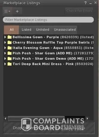 I've been having major issues with my store on marketplace. About 4 weeks ago I logged into my viewer and found my marketplace listing disappeared. They were showing on mp site. Items got delisted each time someone went to purchase. Was told by support to raise bug through jira. So I did this.