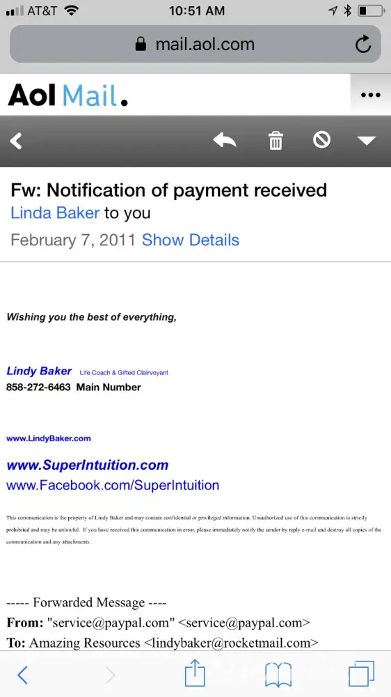 Lindy, you accepted credit card . What is wrong with you ? You can’t expect to lie about me ever paying or any of my friends I referred you to not paying . You eve have on your website that you accept payment for phone readings. Sorry child, you’re just freaking cuz what you did can ruin your business . None of ur clients want their details of our readings blasted everywhere. U messed up . Failed to apologize so now you’ll deal w doubts. Doubt too many want to share details w you when you behave this way. Ihaverecepits charged to my acctsbyyou Lindy. U look worse lying even more.