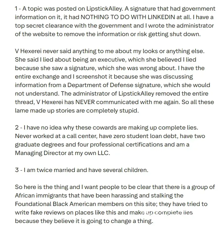 Hey, y'all! So, let me just tell you about this website called Lipstick Alley. It used to be just for black women, but now it's for everybody. But some of the OG black women on there ain't too happy about that. They're straight up racist to other races - even to other black people who disagree with them! Like, they'll bring up where you were born or something, just to try and use it against you. It's ridiculous.