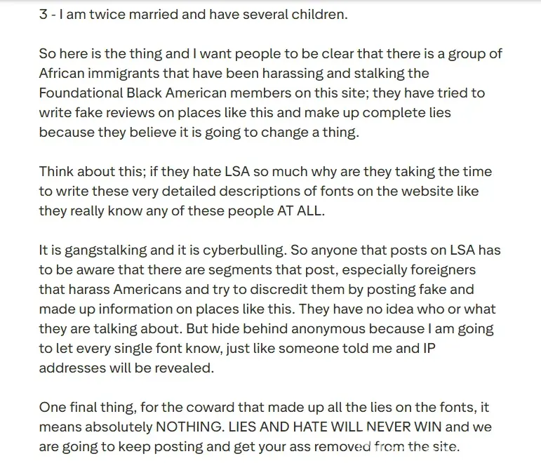 Although the site claims its a site built from the African American perspective, it was never meant to be a site for Black people. There was always an anti black man sentiment since the beginning of the site. People who haven't been on the site since 2006 wouldnt know this but there was always a hatred for Black men on there. Let me also add, there was a user named Smallz who they would take her photos and talk about how dark and ugly she was in PMs, secret groups and blogs dedicated to LSA. So LSA was never a pro black site.