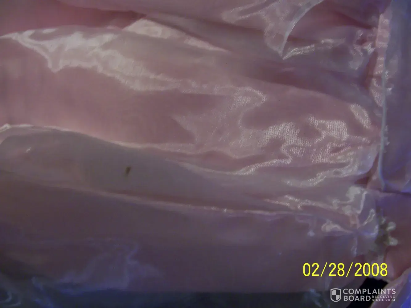 First, I only received 116 of the 121 dresses stated for receipt in auction, I do not know which I did not receive since it was not stated as to how many of each there were. Second there are black spots on some of the dresses and flower attachments, as shown in photos, 1 has a tear of the zipper seam, 1 is coming apart at collar line of ornamentation, and 9 of the 10 dresses with flower ornamentation are smashed beyond repair, the pic to show flower ornamentation in the auction does not represent what was sent. Clearly the boxes were over packed for shipment, I don't know if the flowers were as I received them because of over stuffing the boxes or if they were are sent in this condition, but they are not resalable. I am not sure weather this is standard for this company, but all of the wholesale orders that I have received up to this point have been absolutely great. I also need to state that I thought that I was going to receive good quality dresses, these are not to say the least. I have disputed this transaction thru PayPal until we can get this resolved. Thank you.