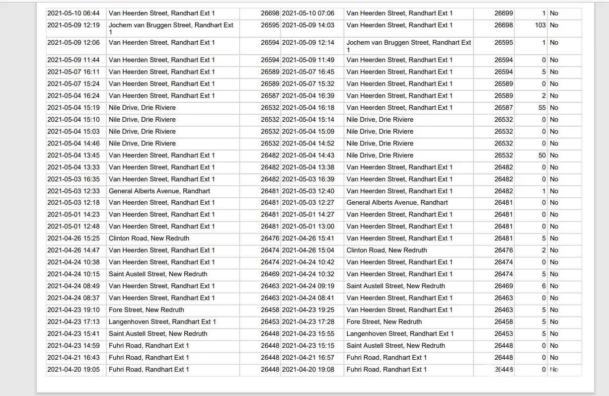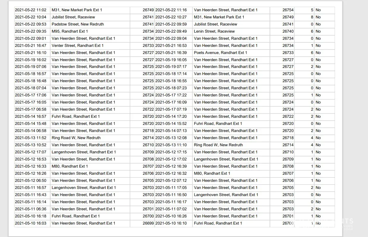 Also see attached tracker report showing the activity on the vehicle