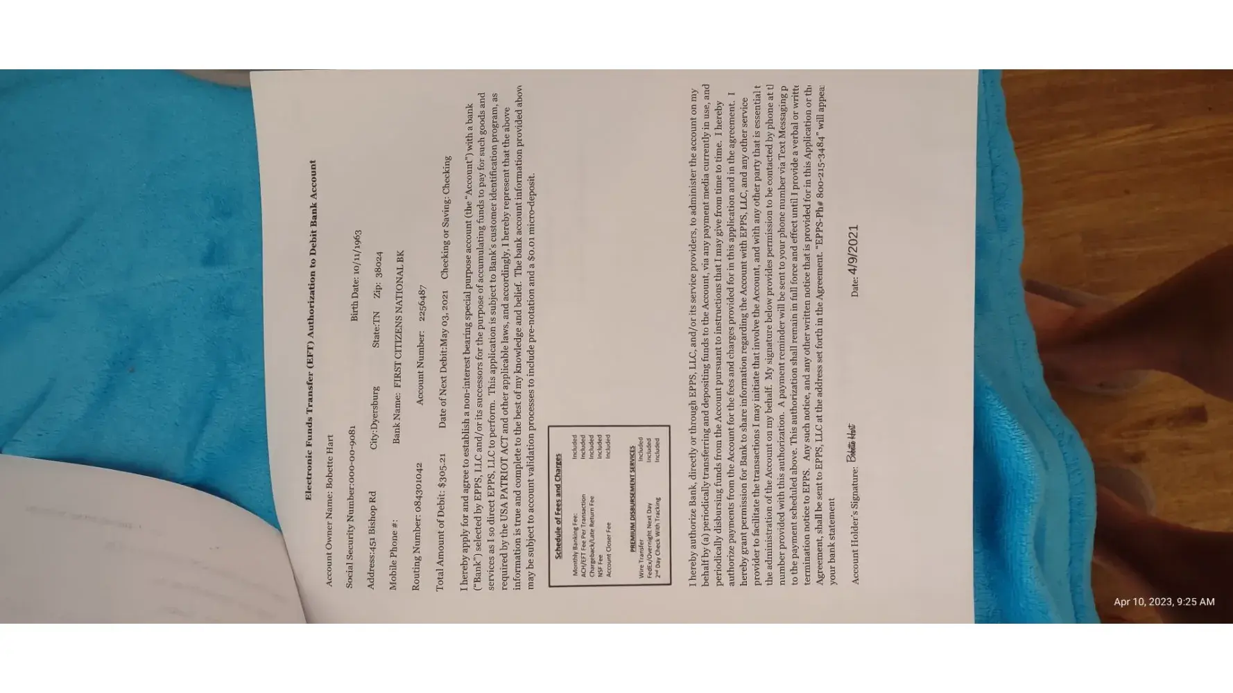 I got a phone call March 16 I spoke with the agent she asked me to sign the papper work
