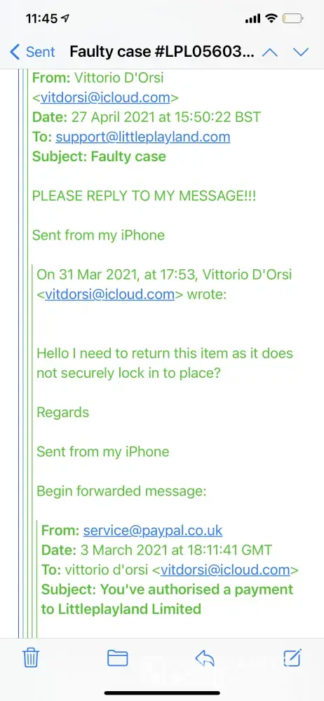 The same day I receive I attempt to use it and it doesn't fit so I email again on the same day and i am told no refunds and no exchange no nothing just that you can't do anything then stating 31st March for some reason being significant, your product took that long to arrive I only received and tried it on the day of requesting a refund!