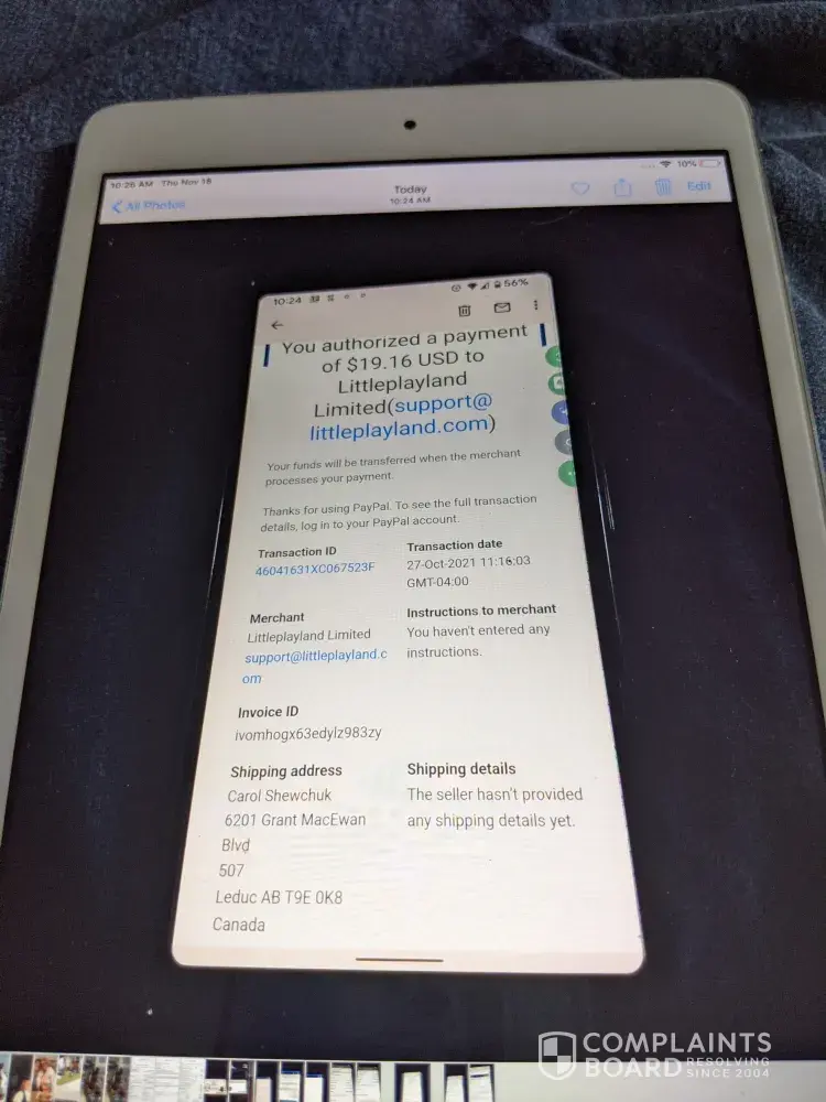 I received verification From paypal on an order From Littleplayland Limited for $40.26. Their website is NOT AVAILABLE and refund address is NOT AVAILABLE. BUT... I also received an order confirmation from Zenora.net for Correct Order for that same product; Correct charge ($32.21). NOW I'm hassling with Trying to get refund and/or stop payment with paypal.