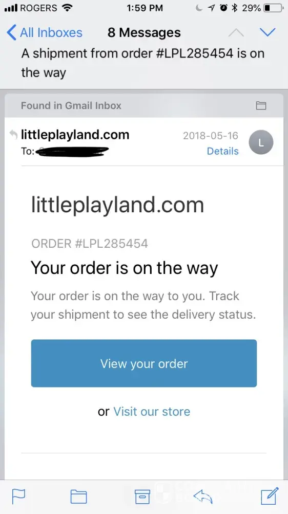 I also was scammed with ordering from LittlePlayland.com. DO NOT USE! I will never order anything from Facebook ads. I will be contacting PayPal for reimbursement. And I will file a complaint with Facebook.
