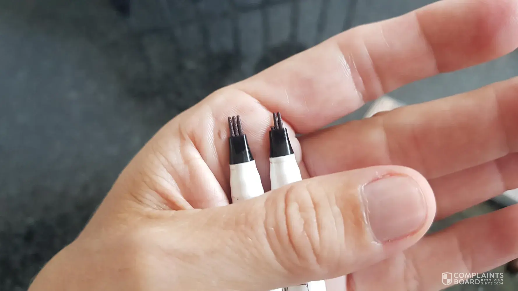 My complaint is exactly the same as the first one on this page - could have written it myself word for word! - "I ordered two Waterproof Fork Tip Eyebrow Tattoo Pens. The delivery took over 2 months. One item (eyebrow pen) was broken, the other dried out. I wrote them immediately. I had to send photos of the broken items. After a few days they wanted photos of the package slip. After another few days they wanted photos of the box from the pens and after another few days they asked me again for photos. After the 4th mail they told me they have a policy, which isn't published on the Website (because they never had such problems as I had, haha!) and this police says, a refund is only possible within 10 days after delivery. So they have a secret policy which they don't show and then the mail with you for such a long time until these 10 days are over? After that I read the reviews and now everything is clear... Never ever again!"