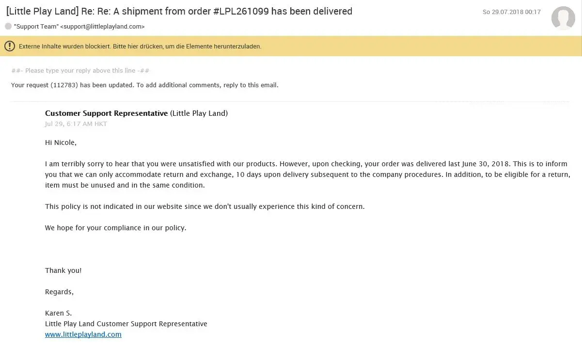 These guys are a damn joke they did the same thing to me I send them a video of the nonworking product all dried up, within two days of the request they sat on it for two weeks deliberately and then have the nerve to tell me I’ve passed the 10 days to make a claim so now they’ve kept my money, my credit card information, they are probably committing identity theft, and they’re getting away with scamming people and now I have a piece of crap product. Thank you Facebook for advertising these junk people who claim to be legitimate business I would never buy anything from little Playland these guys are scamming identity thieves and I hope that they get what’s coming to them.