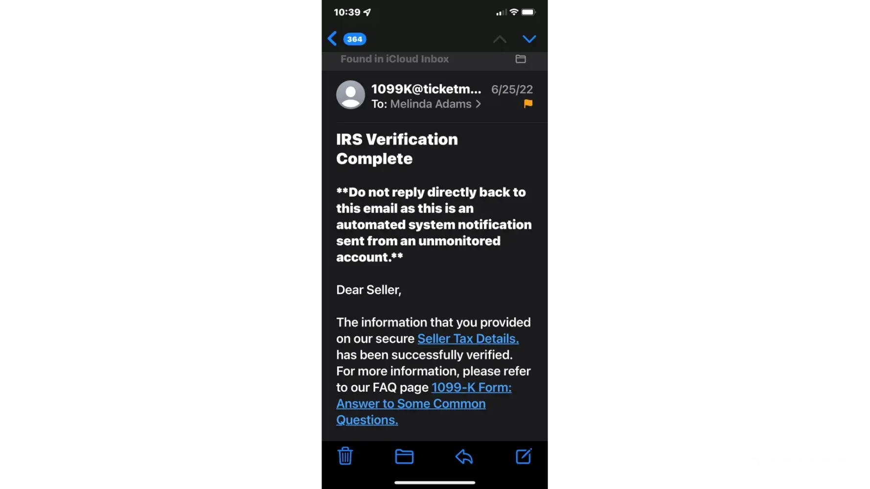 On 6/25/2022 I received an email stating that my IRS Verification was completed.