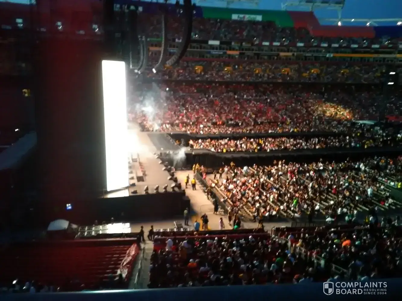 On July 28th we went to jay z beyonce otr2 tour. I paid 722 for 2 seats. Thought these seats would be great. The sketch they had showed the stage was in full view. Well, when we got there, we couldn't see anything. These tickets shouldn't have even been sold . To anybody. I could have paid 100 bucks a piece for a nosebleed seat and had a better view. I've emailed a few people to try and get some compensation, no reply