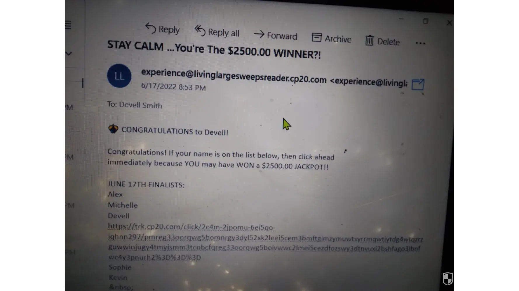 So I got a email it stay calm call living large sweepsreader $2500.00 winner how do I get the 💰 🤑 money