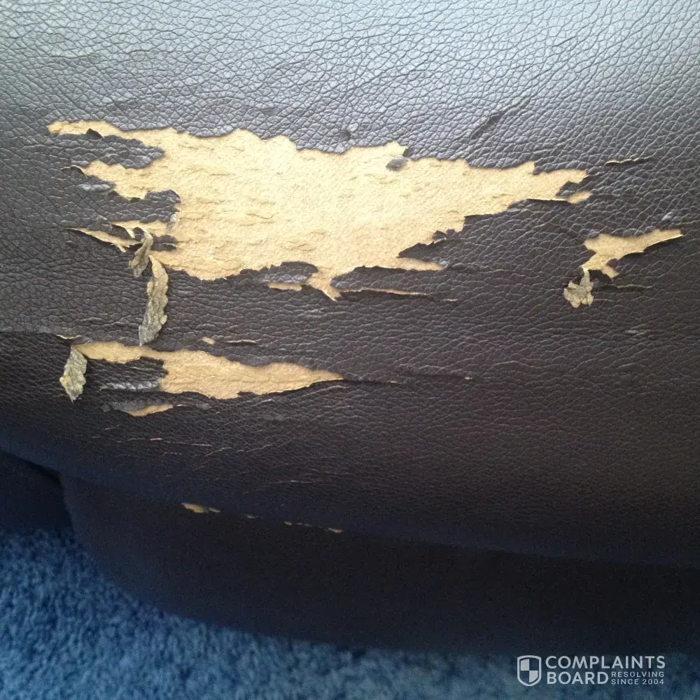 Product was in living room and not used for 2 years (Only used six months since}. The bonded leather is peeling off the back cushions. Purchased in january 2013. It gets worse every day.