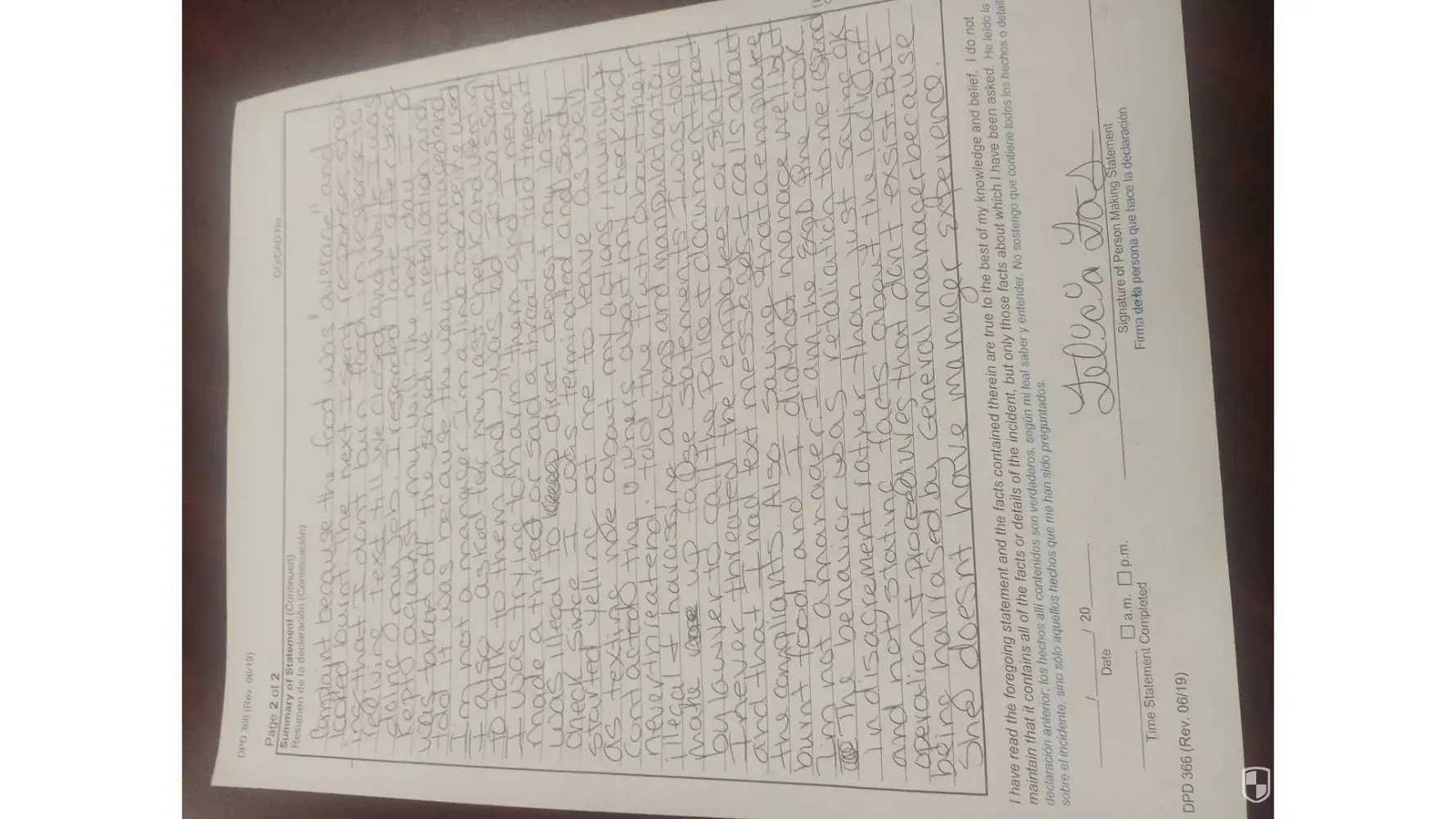 Read full complaintFemale working front end on 01/23/23 Colorado Springs, CO