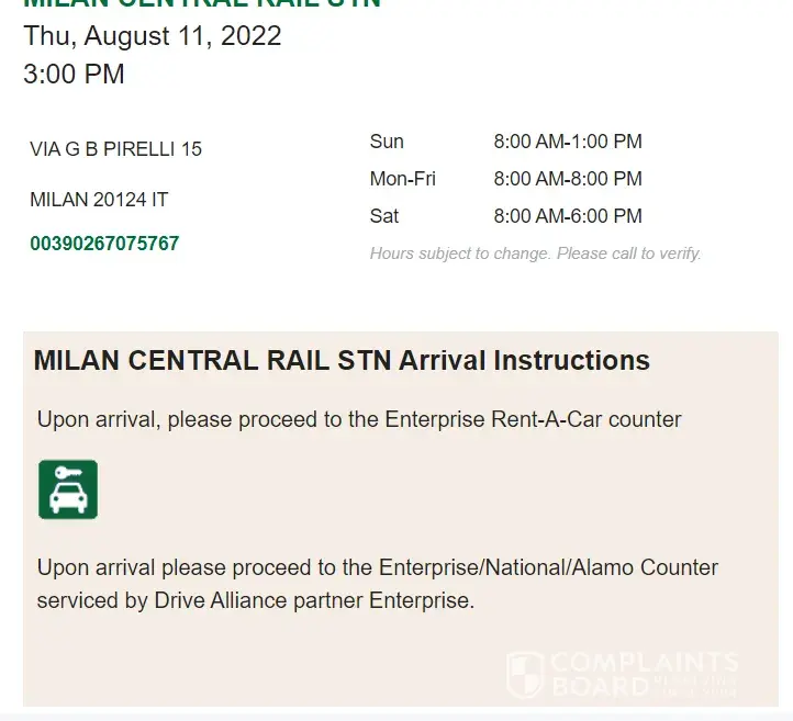 I rented a car from them, taking the car from Enterprise's Milano location, by the central train station. I returned my rental car to the same lady from Enterprise who checked my information and gave me the car on the first place. She walked around the car, looked inside, and checked the car's full tank, thanked me and said everything was fine and I could go.