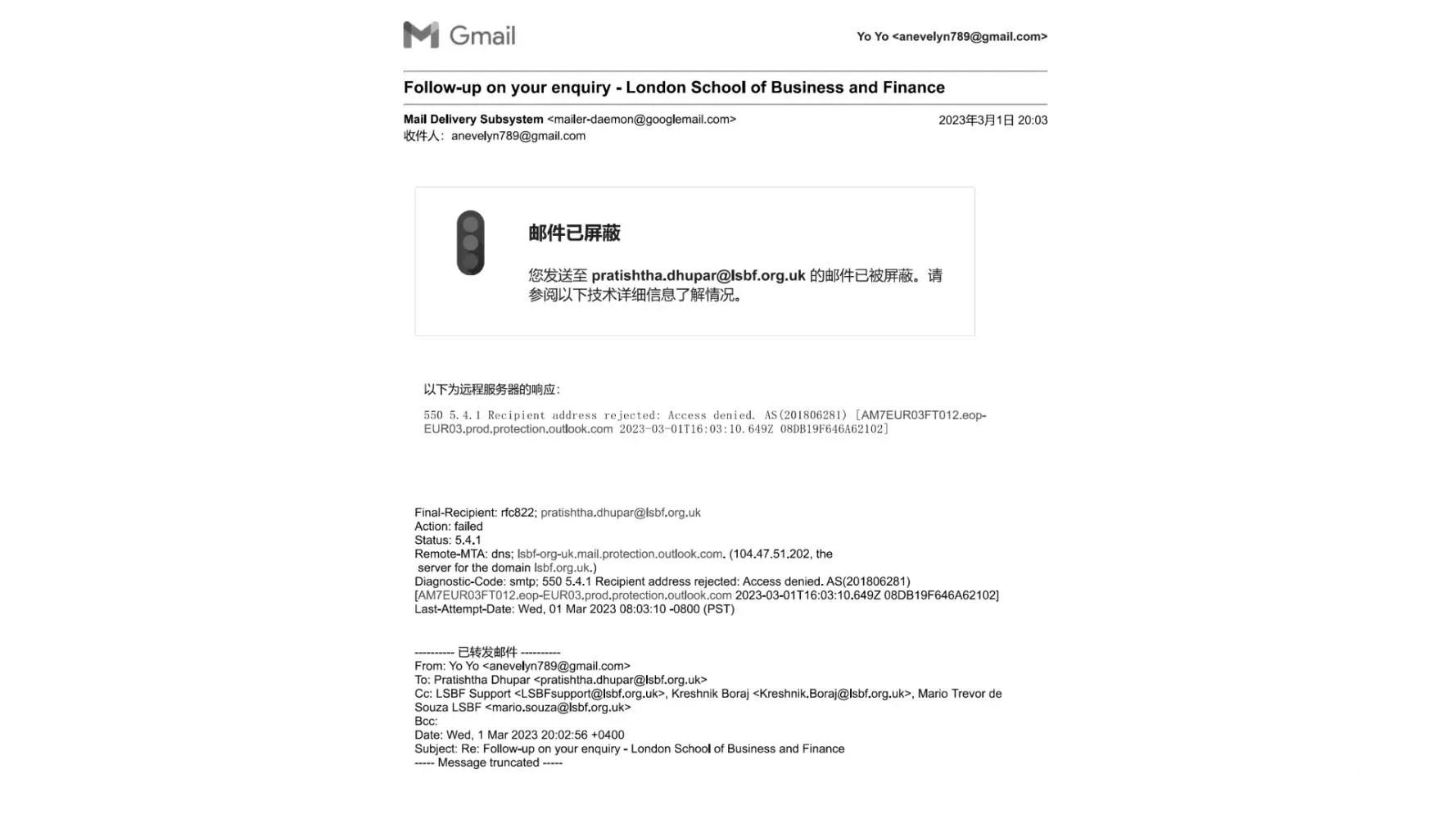 Suddenly when i send email to your team with all @lsbf.org.uk workers, i got blocked from the email.