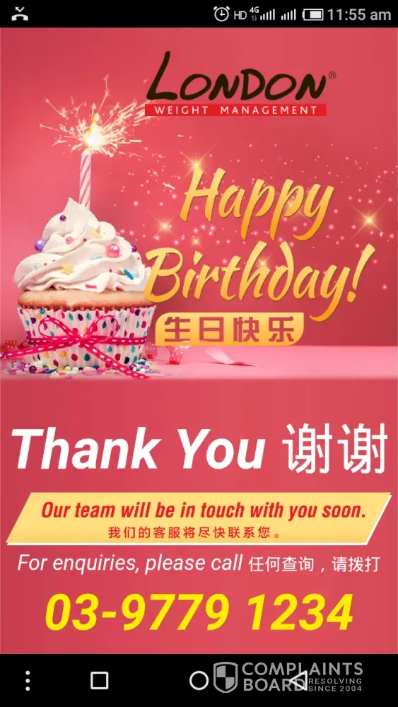 One week later, I received a phone message regarding a free treatment package for me to be claim from London Weight Management. I filled up the form but the branch said I'm not entitled for it.