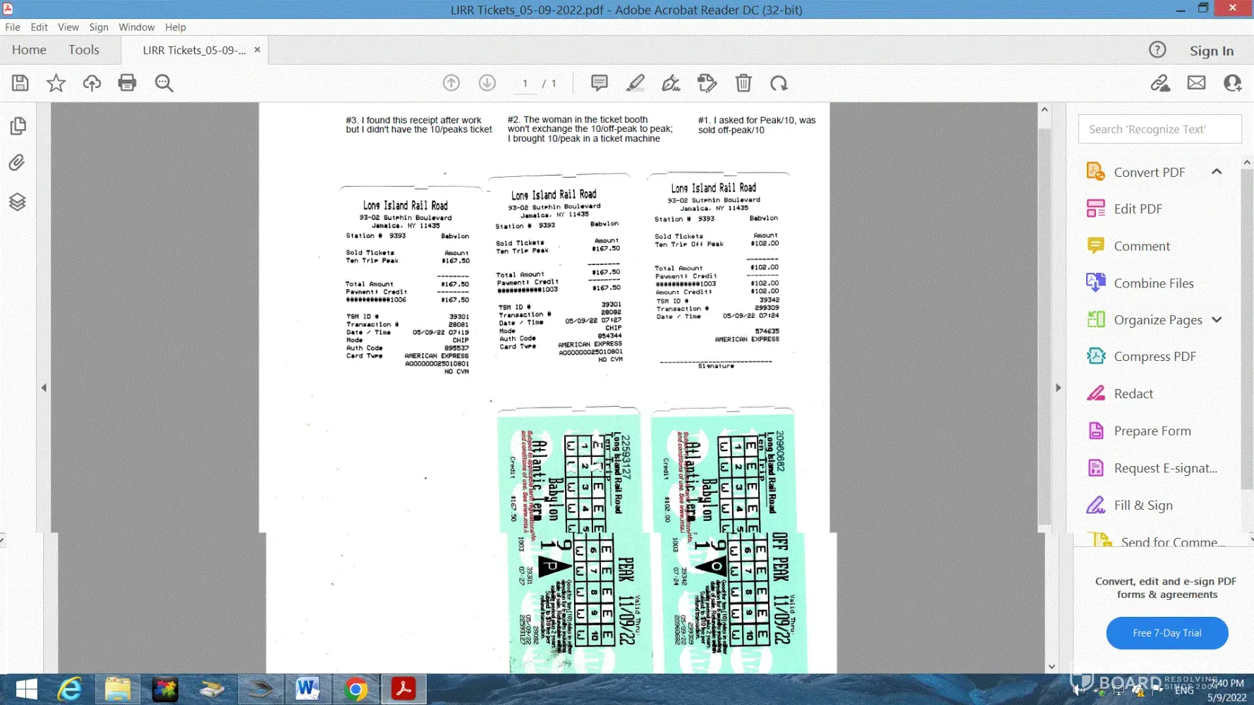 On Monday, May 9, 2022, I went to the ticket booth to buy a pack of 10-peak trips. The saleswoman asked me to confirm Peak or Off-Peak. I told her I wanted Peak tickets for work. At 7:24 am, the saleswoman sold me a pack. On my way to the train, I noticed I had an off-peak 10-trip ticket instead of a peak ticket that I told the saleswoman. So I ran back to the ticket booth and asked to exchange peak tickets. Instead, the old saleswoman handed me a Form “Application for Ticket Refund" and asked me to fill the form and mail it for a refund. I was upset and brought a 10-trip peak ticket from one of the vending machines outside the ticket office area at 7:27 am to catch the train at 7:29 am to Atlantic Terminal.