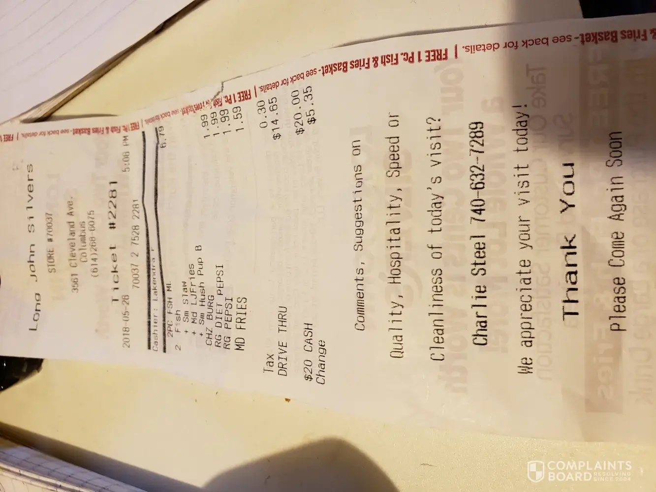 We didnt receive the correct order, we also had to wait 15 minutes for our food. We were told that our food was going to take longer because " someone in the bank got distracted " The food was dripping in grease to the point that the batter was falling off of the food. On top of this..the restaurant was very dirty. We will not be returning to long john silvers restaurant.
