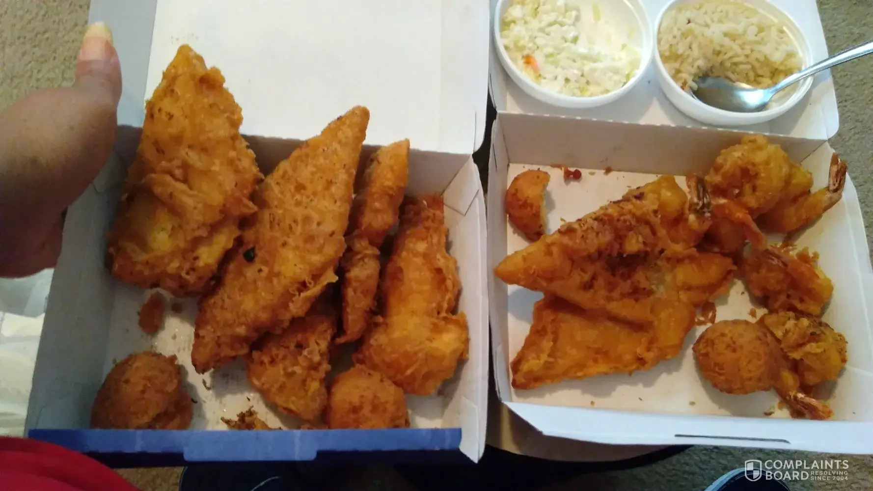 We ordered a fish and shrimp meal and it was not fresh tasting at all it was cold and fries where like rubbery it was good the first time we got it but this time it wasn't good would like it if you can do something about it thanks we like eating there and people are very nice who work there so if we may get some coupons that will help too thanks you