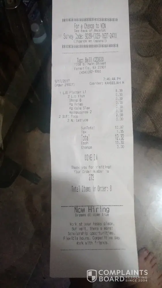 Ordered and 8 pc meal will french fries and cole slaw. 2 additional pieces of fish and a pineapple cream cheese pie. I have 7 pieces of fish. Didnt get 8 pieces or my 2 additional, i got a handful of french fries that was cold. It was suppose to be a family fry. Not even enough for 2 small fries. My cole slaw is expired and frozen. Date prepared say 9/22, discard date says 9/27, today is 9/29 how gross. Pineapple cream cheese pie frozen as well. I paid $25.86 for food i cant feed my children. This is so gross! Location is 3103 North Gettysburg Ave. I called the phone number on receipt 10 times for it to ring to a fax. I cant return food as im headed to work and stopped to feed children before hand. Unsatisfied in every way. Time and money wasted on inedible food. And the oil is dirty little black specks all over the fried food.