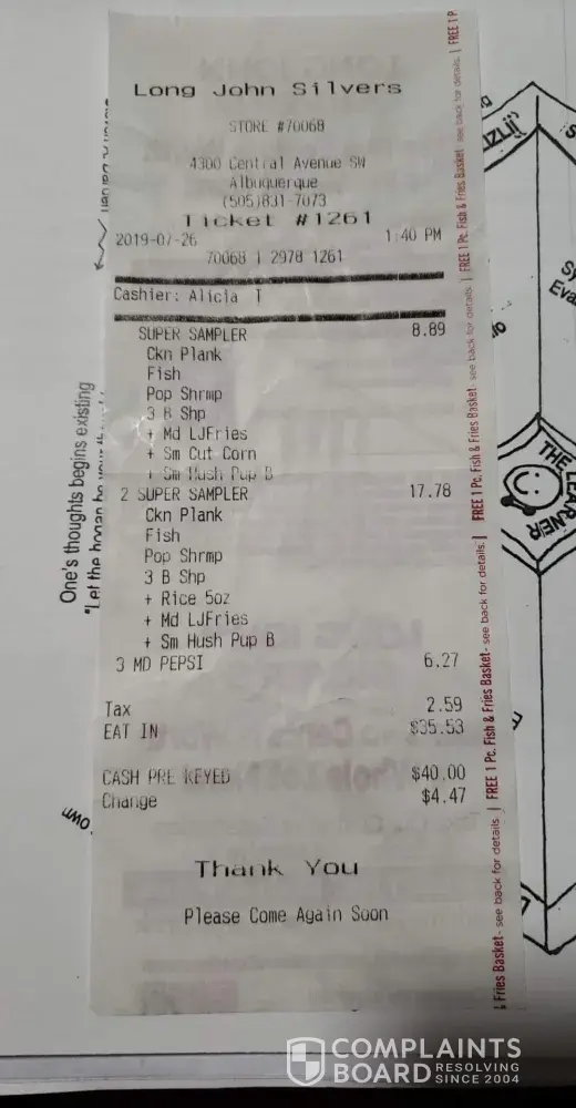 Read full complaintdrive thru service