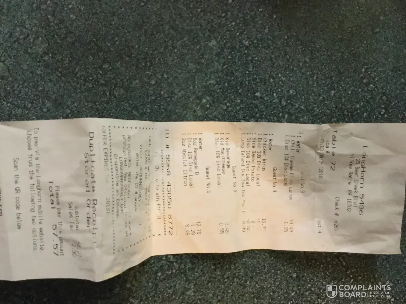 Initially my desired resolution was just a $50 gift card for the inconvenience caused and the unconcern if the error would've caused any issues with my credit card company, not to mention time and gas spent going back to Long Horn attempting to get this issue resolved. Now since I've had to go this far and complain to the corporate office and spend time out of my day to construct this complaint, I am now requesting a gift card of $100, I feel that would show that Long Horn Steakhouse cares about their customers and value them as people and not just another dollar. I am really surprised and upset that it has come to this but I am giving Long Horn a chance to make this right before taking the next course of action by calling the Better Business Bureau